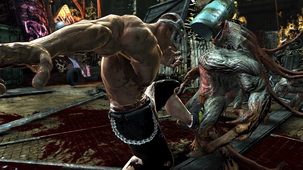 ■多樣化的動作,新技術重現 攻擊方式除了里克的拳腳外,還能就地使用各種武器。藉由破壞的背景,可以撿取石塊、木棒、刃物...等強大武器。而且隨著武器不同,敵人還會有不同被擊倒方式:例如頭被捏碎、整個人被打飛、身體被砍斷...等等。在最高性能主機處理下,保證血肉模糊,讓您能享受屠殺怪物的快感。 除此之外,還加入了把敵人當作武器的新系統,讓作戰面思考與殘忍度更加昇華。這次里克甚至擁有身體再生能力,被斬斷的四肢也可以迅速恢復,使視覺感官有更猛烈地震撼。