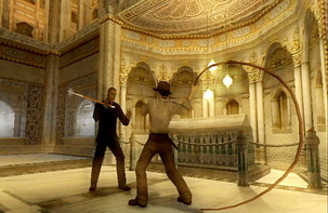 遊戲中包含格鬥、槍戰和駕駛等豐富的元素,其中駕駛部分除了普通的吉普車和滑翔機以外,還包括大象這樣的極富特色的交通工具。遊戲支持最多4名玩家進行對戰,另外還能開啟經典的《印第安納瓊斯與亞特蘭蒂斯宿命》。