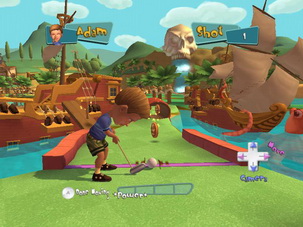 Wii平台《遊戲狂歡節》中的人物以高爾夫運動展開較量!雖然本作沒有普通高爾夫遊戲那樣廣闊的場地,不過正是因為相對較小的場地才使得比賽更加具有技術要素,作為Wii平台的運動遊戲,本作也充分運用了Wiimote的體感操作功能,並且支持四人同時遊戲。