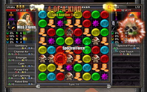 遊戲裡玩家需要控制自己的人物在各個村莊和城鎮中打聽情報、購買裝備,而進入迷宮探索寶物和敵人等RPG的要素也包含在遊戲中,只是戰鬥全變成了連珠遊戲。把其它類型的遊戲要素溶入RPG中已經是一個被濫用的話題了,但是你試過用連珠PUZ遊戲的方式來玩RPG麼? |