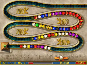 祖瑪遊戲新作《埃及祖瑪 法老王的挑戰》(Luxor : Pharaoh's Challenge)將帶你在古埃及的美麗土地上進行一次新的旅行 ,在遊戲中你將通過88個全新的關卡,輝煌的古代寺廟和宏偉的金字塔會讓你感受到強大的視覺衝擊,玩家將要操縱神秘的聖 甲蟲在魔術球到達金字塔之前將它們破壞,而幫助你的各種道具和能力會比之前的更為強大。 遊戲特色: 這款款老少皆宜的益智類遊戲,主角是一隻石青蛙,它會吐出各種顏色的小球。小球造型美麗並且有著神秘的色彩,環繞著石 青蛙的是載著小球的軌道,各種顏色的小球會沿著軌道 向前滑動。石青蛙阻止小球滾進軌道終點的洞裡的方法就是用吐出小 球與軌道上的小球相結合,顏色相同且數量達到三個以上就會消除得分。屏幕右上方有一個分數格。當達到一定分數(黃色的 氣滿)的時候遊戲中會聽到 「ZUMA」的聲音,然後所有小球倒退若干步。這是一個表面現象,這個分數格最重要的作用是表示 該版的結束,當「ZUMA」叫出後,就不會再增加小球了,也就是說消除完眼前的所有小球就能過關了。 同時這也是一款根據PC上大受女性和兒童歡迎的《祖瑪》改編的遊戲作品。遊玩的方式與《祖瑪》相同,只要將相同顏色的球 聚集在一起就可以消除掉,雖然看似簡單的規則,不過遊戲卻擁有無限的樂趣。 |