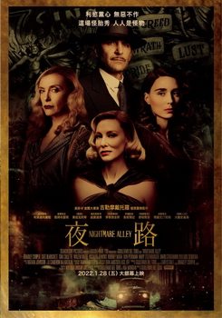 《水底情深》金獎導演吉勒摩戴托羅睽違四年的作品,重拍1947年同名黑色電影,入圍2022廣播影評人協會最佳影片、最佳導演等8項大獎,片中延續了吉勒摩戴托羅招牌暗黑風格,並找來凱特布蘭琪扮演蛇蠍美人,尬上性感演技才子布萊德利庫柏黑吃黑的情節。