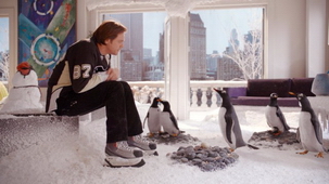 片中的企鵝是使用真的企鵝與CG動畫結合的拍攝方式完成,由世界知名的野生動物兼企鵝專家史考特卓斯曼(Scott Drieschman)挑出了金圖企鵝(Gentoo別名巴布亞企鵝)進行訓練,他們的身高約49-55公分,擁有橘黃色雙腳,有肥肥的白肚皮,頭上還有白色的條紋,為了配合這些嬌客,拍攝期間,整個攝影棚都被改造成一個超大的冰庫,所有的人類演員都要忍受低溫,並身著厚重外套加上帽子上場。 |
