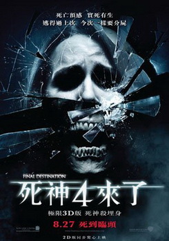 最新一集的《絕命終結站4》將會隨首度採用的最新3D立體科技攝製技術,引進全新震撼的戲院立體聲光效果,預料會讓影迷體驗更身歷其境、更加驚嚇、更來不及眨眼的毛髮直豎、坐立不安感受! |