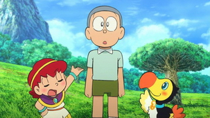 胖虎、小夫、大雄正在鬥獨角仙,結果大雄爸爸買給他的「獨角太郎」被輕鬆打敗,不甘心被嘲笑的大雄於是拜託哆啦A夢前往500年前的紐西蘭,捕捉已經絕種的大王獨角仙,沒想到「時光膠」卻不小心把絕種的「莫亞」大鳥給抓了回來。