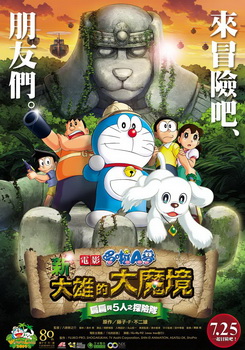 本片是獻給《哆啦A夢》原作藤子.F.不二雄誕辰80周年的紀念電影,日語版還請到了知名演員小栗旬為劇中角色獻聲,更有傑尼斯偶像團體Kis-My-Ft2為電影演唱主題曲。 除了「哆啦A夢」及「大雄」等原有角色外,這次還加入了一位新成員「扁扁」,是一部非常具有探險精神的作品。 故事設定在非洲某處,一座狗王國因被深谷包圍而與外界隔絕。原本國王因愛好和平而禁止研發武裝技術,但後代某個企圖征服世界的逆臣卻違反命令,還流放了當時的王子。 就在這一天,大雄在家裡附近的空地上發現了一隻小狗,決定帶回家飼養並取名叫「扁扁」。某個晚上,胖虎從巨石像那裡拿到神秘的巴鄔剛王國藏寶圖,偶然間,扁扁從大量的叢林空拍照中發現了奇異的巨石像,為了解開巨石像的謎題,大雄、哆啦A夢、靜香、胖虎、小夫與扁扁展開了一場精采的大冒險!究竟他們要如何到達秘境,並拯救神奇的狗王國呢 |