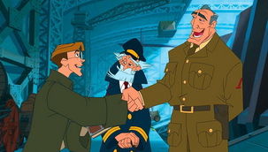 曾主演過《回到未來》系列電影以及『天才家庭』、『城市大贏家』等影集的米高福克斯為片中的 Milo Thatcher 配音,幫 Captain Rourke 配音的則是詹姆斯葛納,幫 Helga 配音的是克勞蒂雅克莉絲汀,曾在《玩具總動員》系列幫彈簧狗配音的諧星 Jim Varney 在本片中則幫 Cookie 配音,但是他在2000年上半年就已經逝世,沒機會看到本片上映,本片也因此成為他的遺作。本片其他配音卡司還包括有 Corey Burton 、 John Mahoney 、 David Ogden Stiers …等等。 |