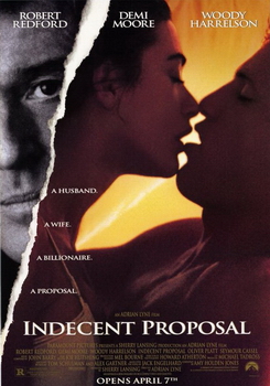 本片探討80年代貪婪、金錢掛帥的美國。一對夫婦認為他們的愛情彌堅足以克服任何困難,甚至是為了一筆龐大的金錢而和一位億萬富翁共渡一夜春宵。然而,他們沒有想到的是阻擋在彼此之間極度的恐懼、自尊和不安全感。在全美復活節檔1672家戲院聯映下,創下二千五百萬美元驚人票房記錄。院線上映之時,曾引起熱烈的討論,為了錢,願不願意把一夜情賣了,當時大多數的婦女表示,假如對象是勞勃瑞福,不用一百萬,就算是一千美元,她們都願意。 |