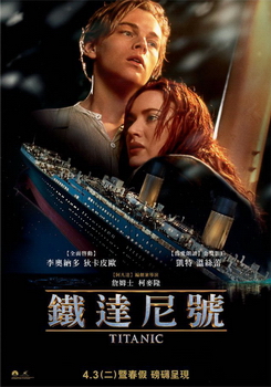 故事改編自二十世紀初鐵達尼號海難事件,李奧納多、凱特溫斯蕾主演。李奧納多因為本片大紅,主題曲「My Heart Will Go On」更傳頌大街小巷,不少人一看再看,引發熱潮,創下多項輝煌記錄。