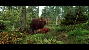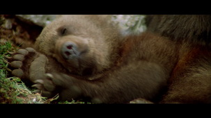 故事發生在山巒綿延的森林中,某天熊媽媽帶著自己的孩子在尋找蜂蜜,正當母子享受這頓大餐時,災難不期而至,土石突然坍塌砸死了母熊,小熊傷心欲絕,不得已踏上了獨自生存的艱困之路… 某天小熊在寧靜的山谷裡聽到幾聲槍聲,隨即傳來哀嚎的嘶叫聲,牠發現了一隻被獵人打傷的巨大灰熊,當大熊在傷痛發作時,小熊不顧大熊的威脅而為牠舔拭傷口,大熊漸漸接受了牠,成了小熊的保護者。 在一次獵人的追捕中,小熊被獵人捕捉到,當獵人面對純真稚氣的小熊時,心中油然而生了一股愛護小熊的情感。而大熊在營救小熊的過程中,制住了打傷自己的獵人,就在巨掌落下的那一剎那,面對嚇得縮成一團的獵人,這時大熊動了惻隱之心並轉身離開,得到寬恕的獵人為自己的所作所為深感愧疚,便放棄了獵殺熊的計畫,離開了森林… 經歷了種種磨難的小熊在大熊的保護和教導之下漸漸長大成熟起來,並一起在弱肉強食的自然界中面對各種挑戰… 關於本片 這是一部介於紀錄片與劇情片之間的電影,由法國著名導演Jean-Jacques Annaud執導。 本片完全是寫實主義風格,沒有任何旁白,而是憑著絕佳的跟蹤拍攝與剪輯,構成一個關於熊的完美故事。導演透過類似記錄片的拍法,配上極具風格化的獨特攝影,不僅呈現出動物有血有肉的真實情感,更和人類的貪婪獵殺有著極為強烈的對比。 片中不僅描述了小熊和大熊為了在弱肉強食的自然界生存,必須要面對各種挑戰、為愛犠牲自我的勇敢表現,更表達出熊之間充满關愛互助的情感。 影片再次強調人與自然界其他生物要合諧相處的深刻意境。 |