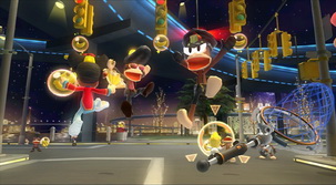 敵人不只嗶波猴,還會有機器人阻擋在玩家的面前。而且在專心對付機器人的時候,嗶波猴還會趁隙偷襲玩家想搶香蕉。 |