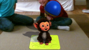 玩家可以替小猴打扮,包括改變毛髮顏色與造型、穿著各式服裝等。之外還可以在紙上塗鴉並使用 PS Eye 拍攝下來,轉化為遊戲中可實際操作並與小猴互動的虛擬玩具 |