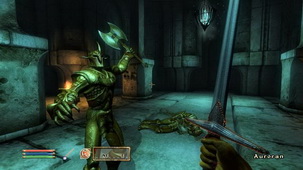 遊戲中還特別設計了「Radiant AI」系統,強化遊戲 NPC 的人工智慧,NPC 將會根據周圍事物做出判斷,自行決定會去哪裡、作什麼、跟誰談話。本作雖然是單機遊戲,但藉由這樣的系統,玩家將可更真實的融入遊戲,感覺自己是跟一個活生生的角色進行互動,而不是和一個寫死的腳本對話。 |