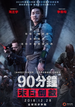 《90分鐘末日倒數》由在韓國驚悚片《恐怖攻擊直播》導演金秉祐執導,故事背景設定於2024年的美國總統大選當天,河正宇飾演一位韓國非法移民的傭兵,片中由其帶領的傭兵部隊承接了一個秘密任務,必須綁架北韓政要。 在2024年的美國總統大選當天,亞哈Ahab(河正宇 飾)所帶領的傭兵部隊承接CIA麥坎指揮的秘密任務,綁架北韓政要,然而在任務行經南北韓非軍事區之地下堡壘時,突如其來的埋伏衝突,卻讓原本單純的任務,可能成為引爆第三次世界大戰的導火線。 亞哈發覺美國、中國與南北韓陷入這場政治陰謀,而北韓政要反成為了掌握全球與論的關鍵。為了不被CIA利用後滅口,亞哈與他的傭兵部隊必須要讓北韓政要活命,在腹背受敵的危機下換取他們自己的生存機會。 |