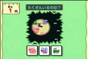 聯機遊戲的設定非常自由,玩家可以選擇一場比賽所進行的迷你遊戲數量,從12個到30個不等,難度也可以隨意調節。聯機模式中的迷你遊戲共分為5個種類,分別對應思考、判斷、記憶、計算和分析5個方面的能力。遊戲的操作也很簡單,使用動作感應手柄對準屏幕,通過「A」鍵來選擇遊戲中的物體或確定選項非常直觀 |